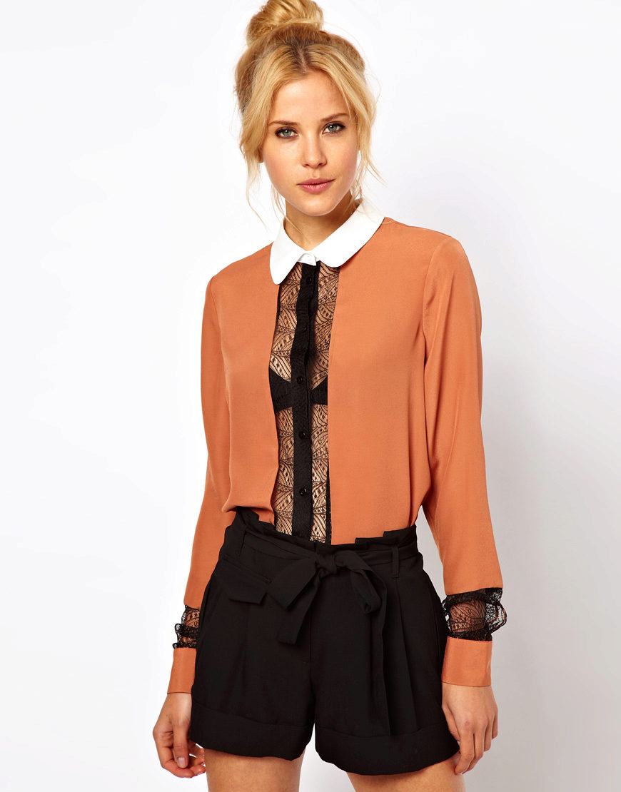 Chiffon blouses with lace inserts look very seductive. The light texture of chiffon fits perfectly on the figure, not hiding its dignity, and the lace and seductive inserts of lace add some intrigue and mystery to your look.