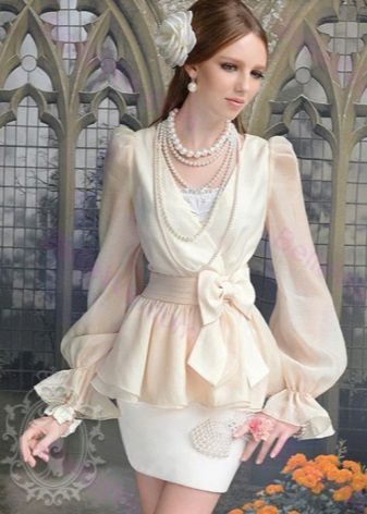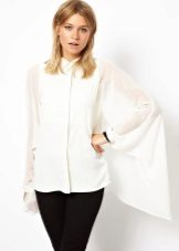 Elegant blouses have unusual sleeves, which also serve as a unique decoration of the product. They can be presented in the form of flashlights or with shuttlecocks. Often there is a length ¾.