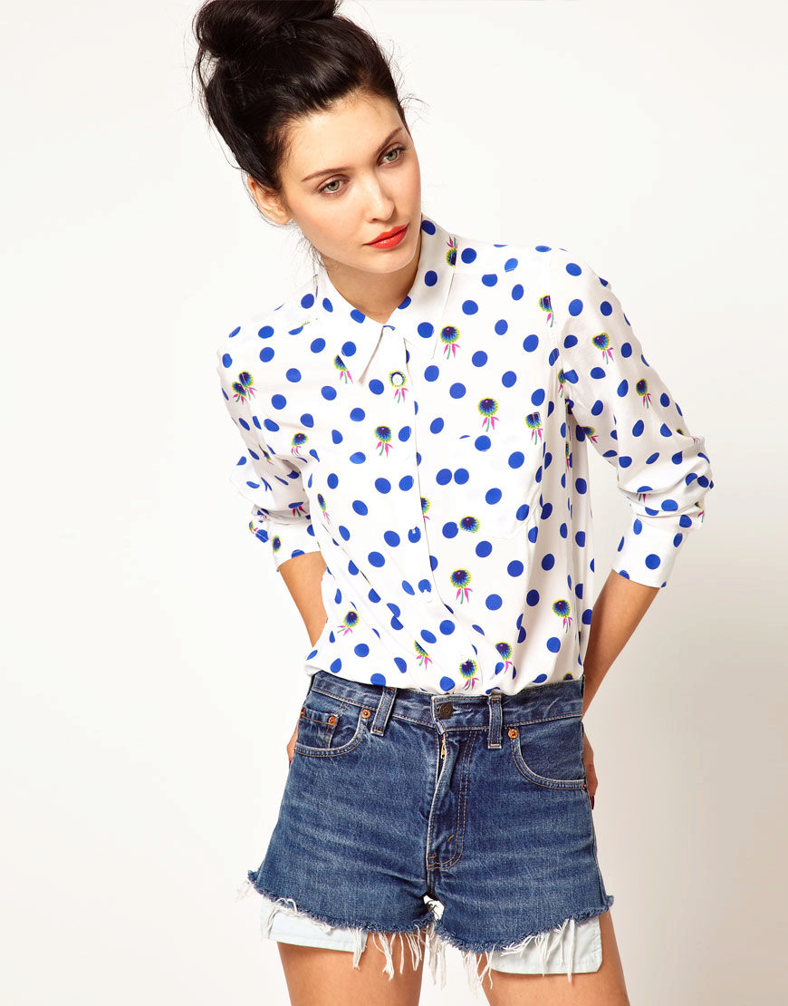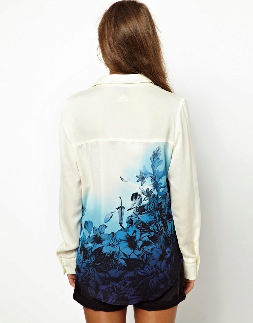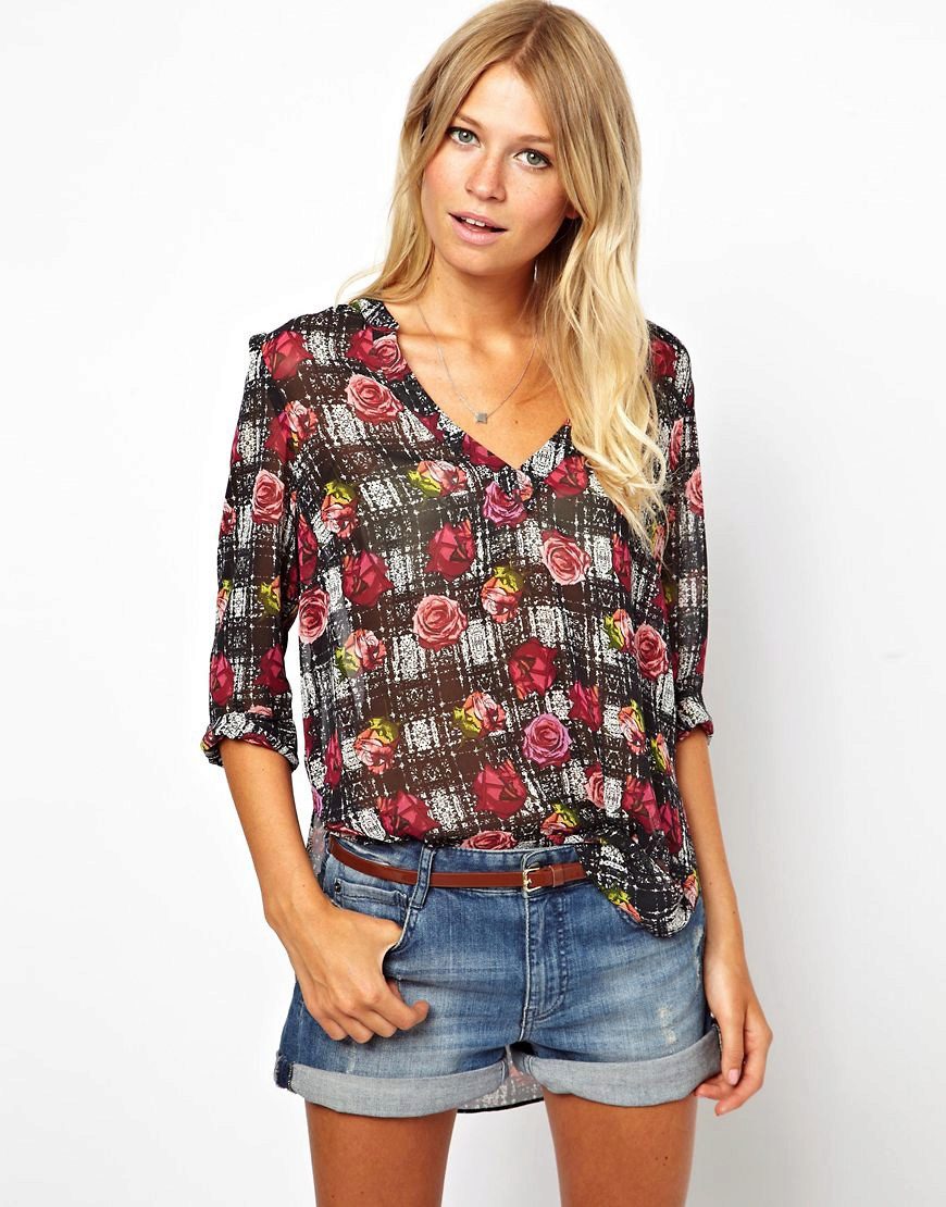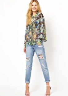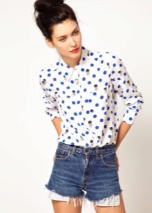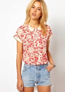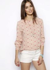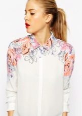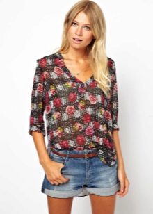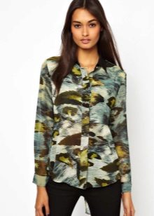 Today, in the trend, everyone's favorite cell, as well as luxurious ornaments on floral themes. Do not forget about the blouses, decorated with animal prints. Often used cute little faces funny animals or images of rare birds.