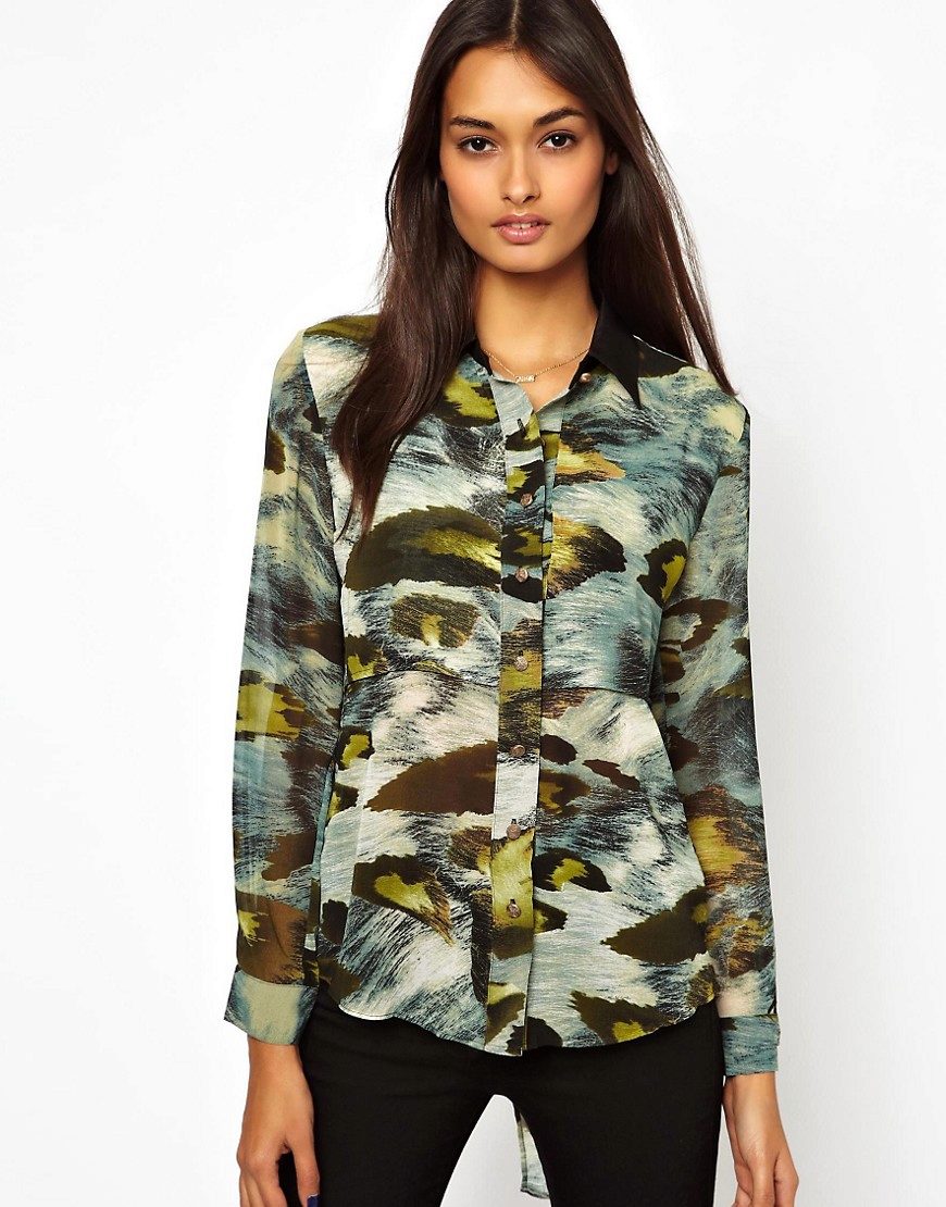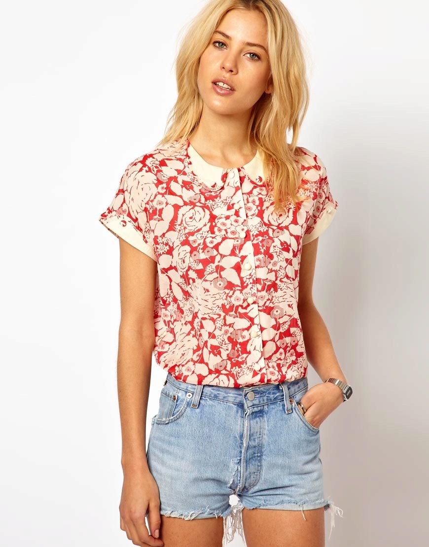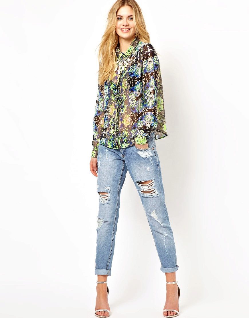 Today, in the trend, everyone's favorite cell, as well as luxurious ornaments on floral themes. Do not forget about the blouses, decorated with animal prints. Often used cute little faces funny animals or images of rare birds.