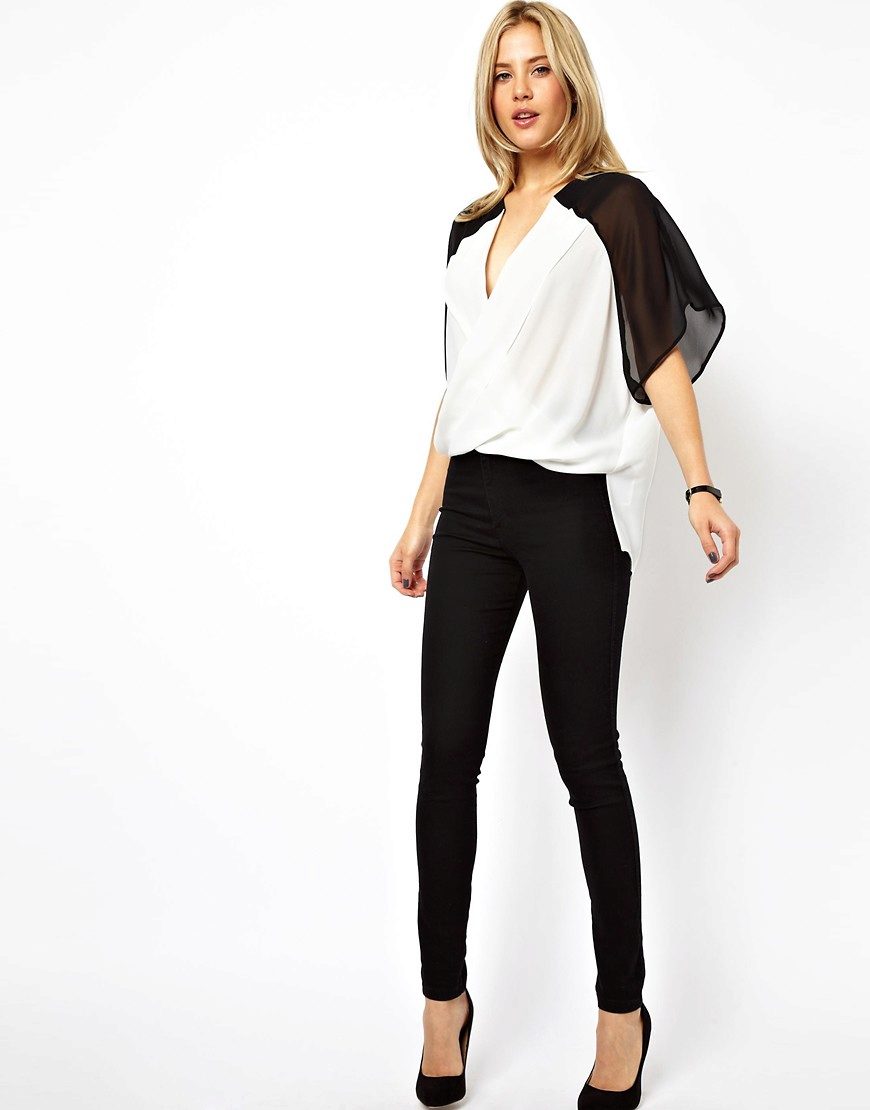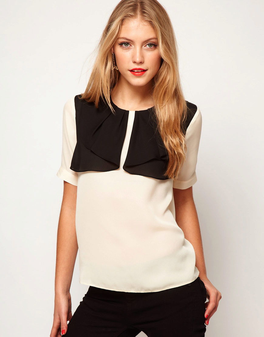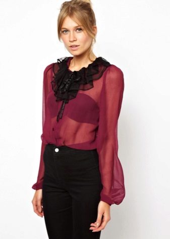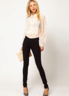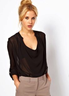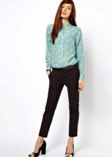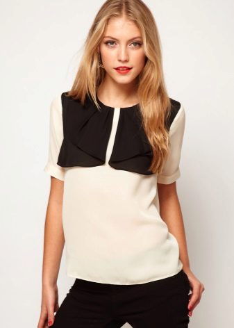 Blouses can be combined with white or black bottom, regardless of the color scheme. With a white top looks beautiful black pencil skirt. The black blouse of a fitting cut is perfectly combined with white trousers.