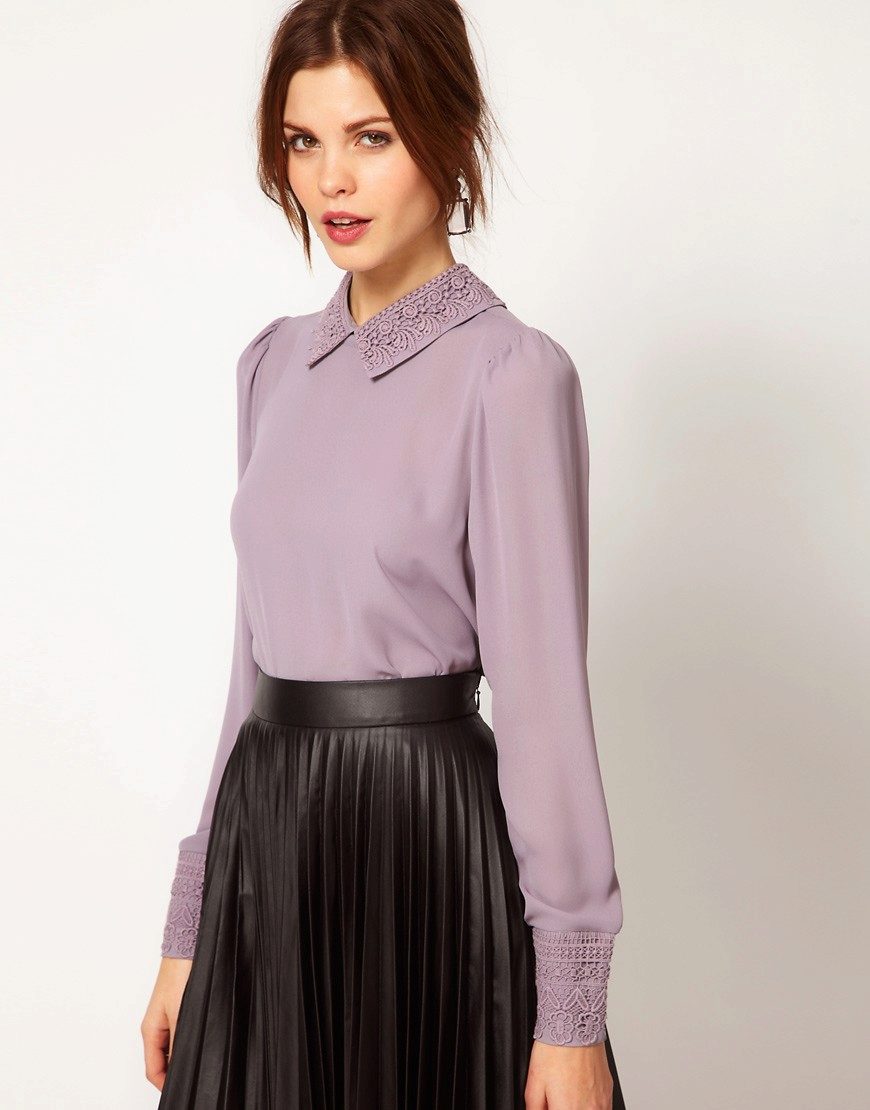 A luxurious collar is always an unforgettable detail of a blouse, which is the highlight of the product. A variety of collars is simply amazing: V-neck, in the form of a boat, deep neckline, perforated collar, jabot or chic bow.