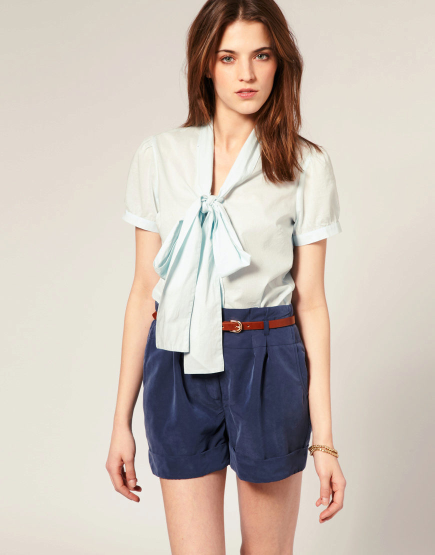 In a trend of a shirt-shirt of a man's or fitted cut. Models with short sleeves are often represented by sleeves-lanterns or single-cut versions. Also this season, popular models with a cord or elastic band instead of a collar, which allow you to create a variety of draperies.