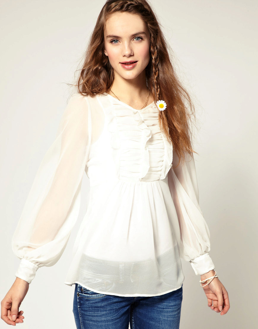 Elegant blouses differ from everyday models in exquisite colors. Always in trend white blouse. Even without jewelry and additional accessories, it already looks solemn. This color is universal, because it fits all girls without exception.