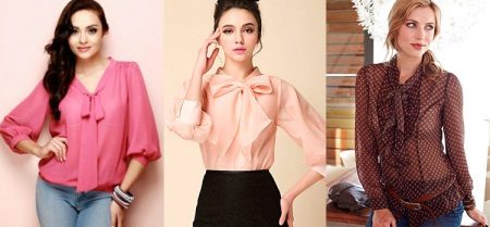 A bow, jabot, flounces or ties will help to add elegance to the usual blouse. Do not forget about the variety of cuts and zippers. Each detail allows you to drastically change the appearance, create an original model.