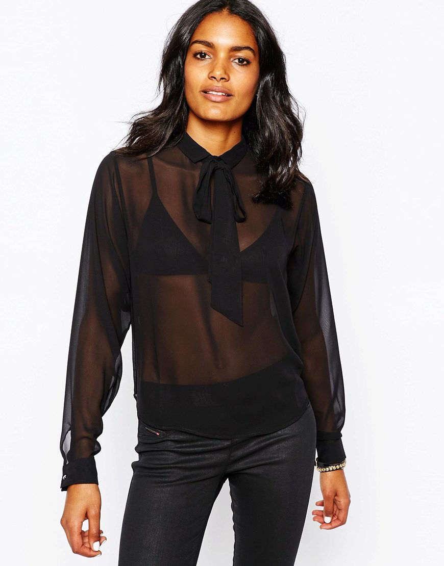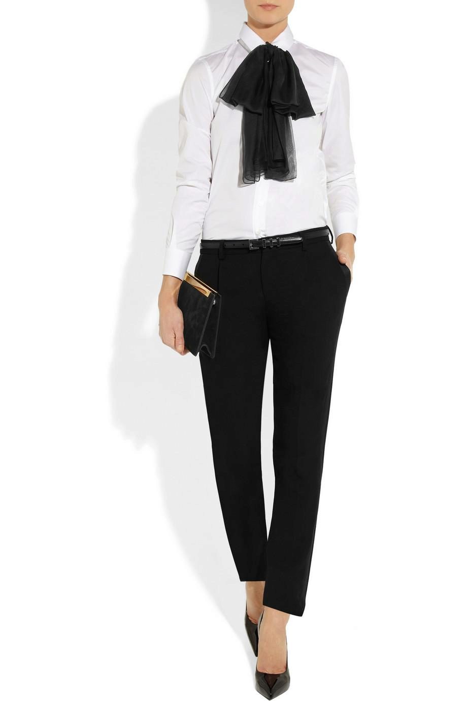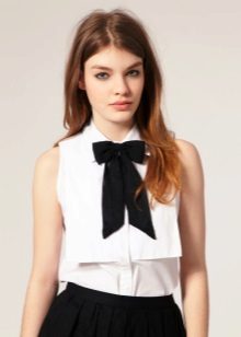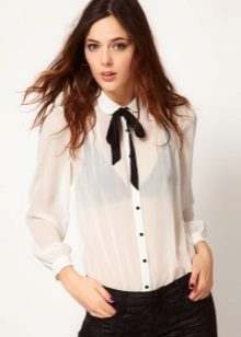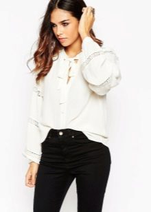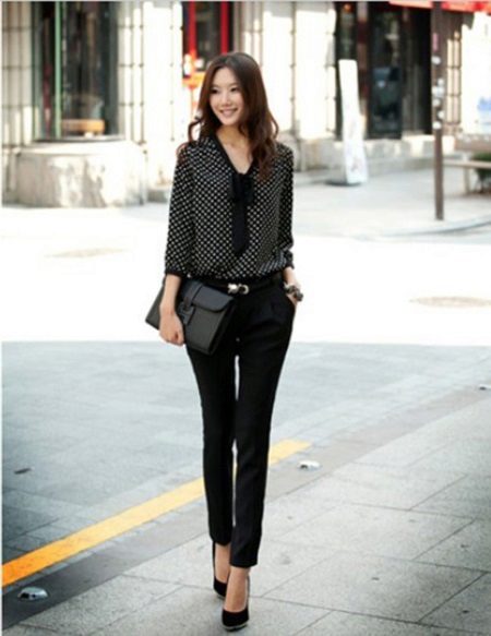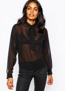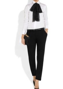A black blouse with a bow can be used to create an evening look. Especially if the blouse is made of transparent or shiny fabric.