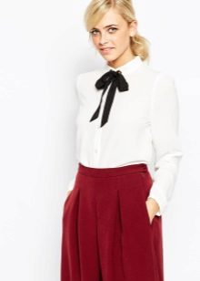 If the blouse with a bow is part of a business wardrobe, then it is quite possible to combine it with classic trousers and a pencil skirt. An elegant jacket or a beautiful waistcoat can be worn over the blouse.