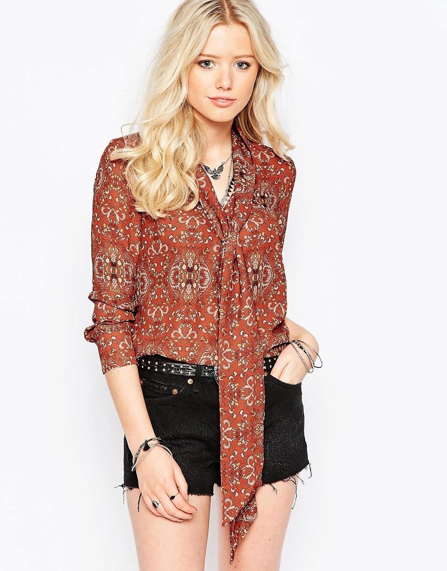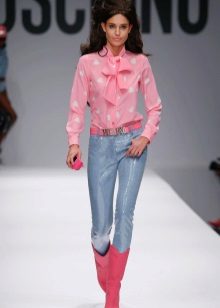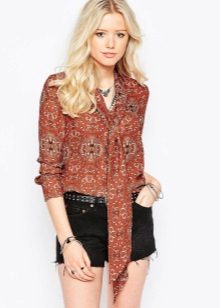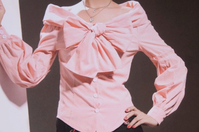 Since the bow itself is already a decorative element, you should not overload the created image with an abundance of accessories and decorations. Especially it concerns models of blouses with a print.