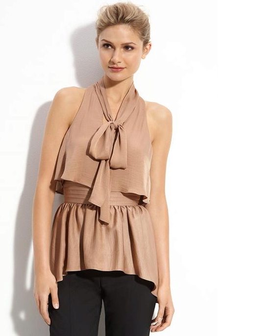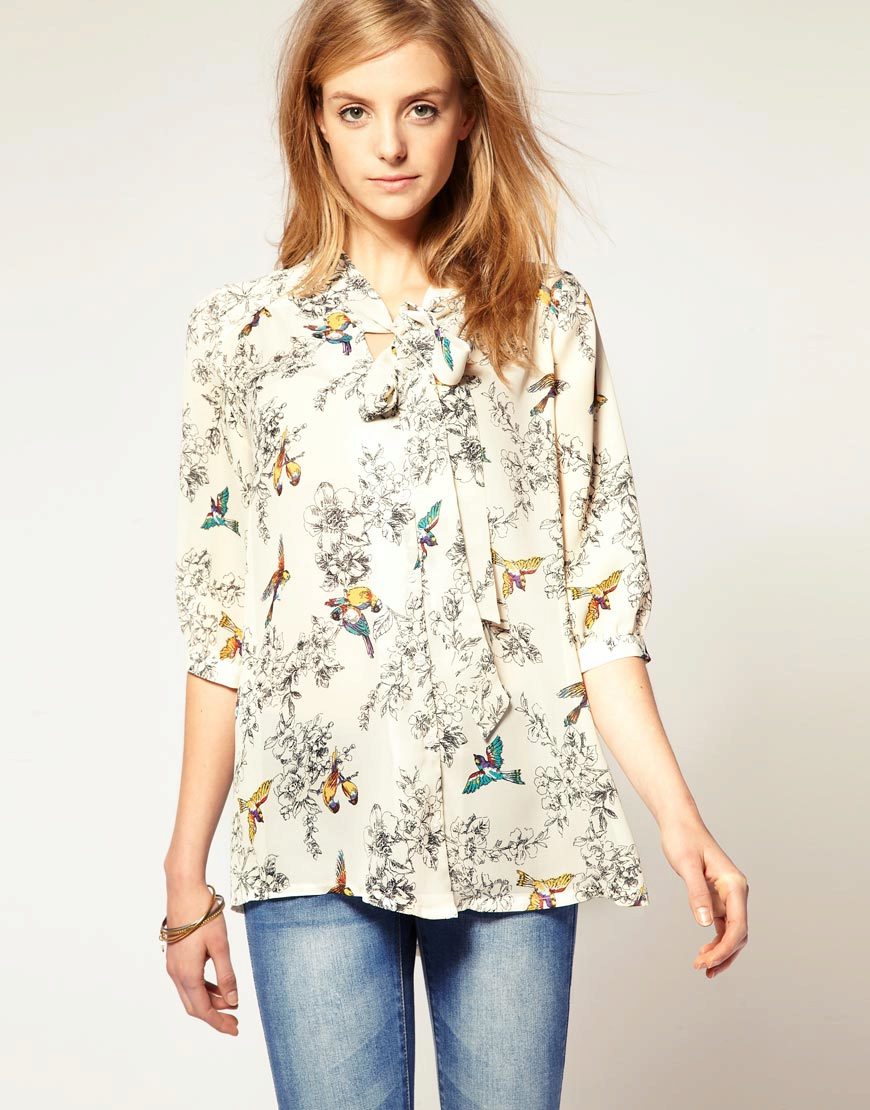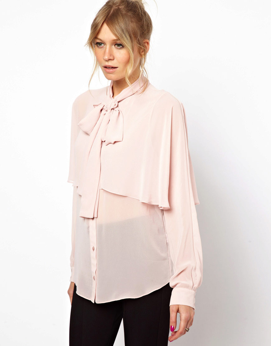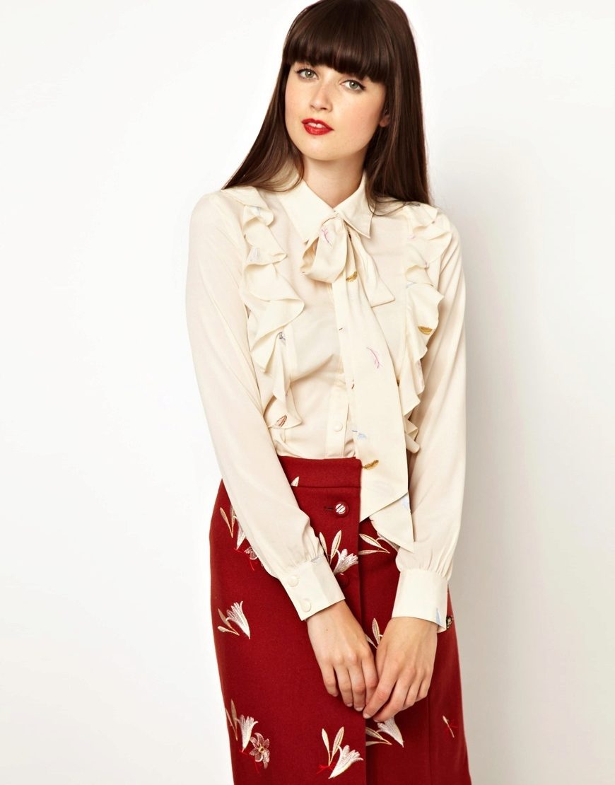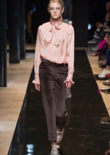 Best of all this style looks on women of fragile physique. The bow, especially voluminous and lush, visually increases the upper part of the body, so this blouse is not recommended for ladies with curvaceous shapes or for owners of an “inverted triangle” type. But on women with a body type of "triangle" this style looks especially beautiful.