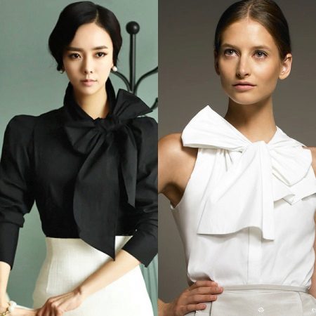 One of the most beautiful and elegant options for elegant women's clothing is a blouse with a bow. This piece of festive clothing was invented in the middle of the last century and still remains very popular and in demand.