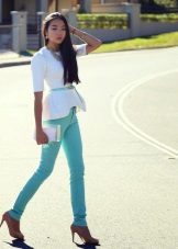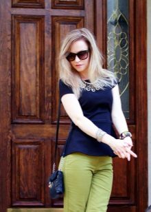 Green bright or dark is very popular in its shades. For a blouse with basque suitable light shades for the day, and dark - for the evening and business meetings. An interesting solution - leather Basques of light green color. Combine it with bright blue, black and purple.
