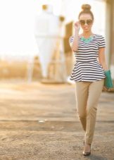 The blouse with basky looks great in a variant with a long sleeve. The sleeve can be narrow or flared.