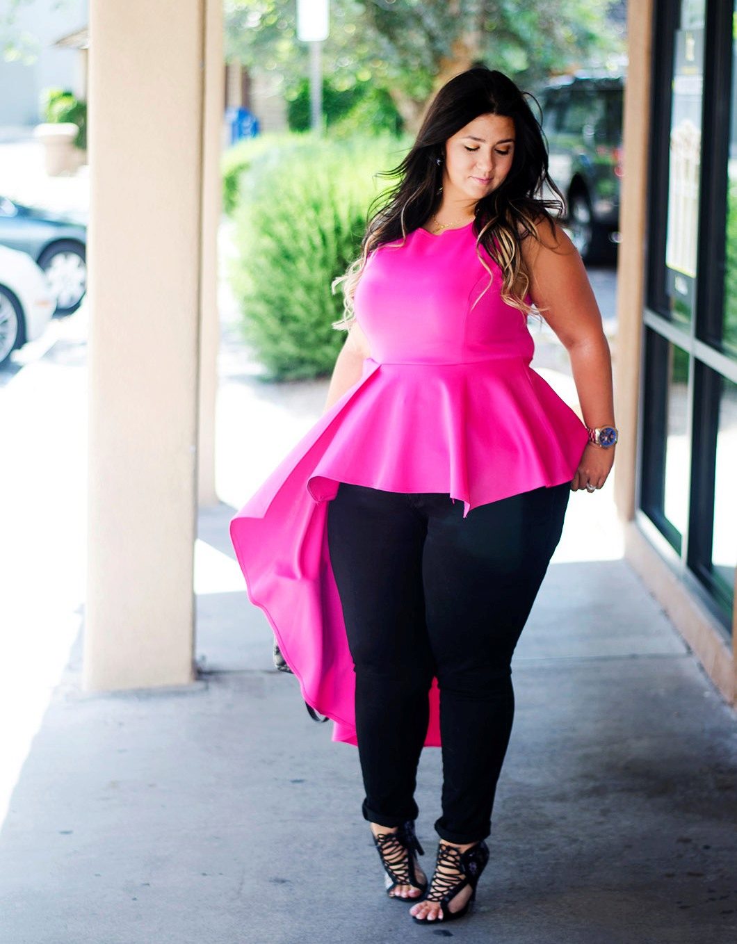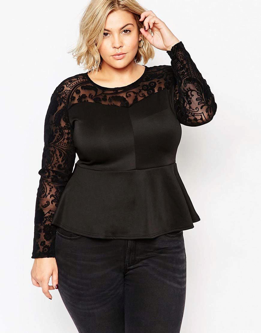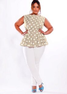 Very often, plump women are embarrassed and afraid to wear blouses with a basque. This is not worth doing. Basque is able to give both volume and visually reduce it.