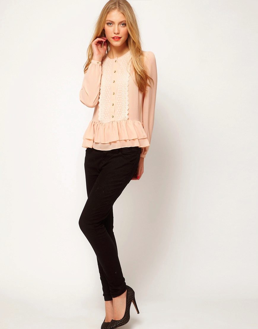 Black blouses with basque practical and comfortable. The same blouse can be worn to work and to the club, the main thing is to combine the colors correctly.