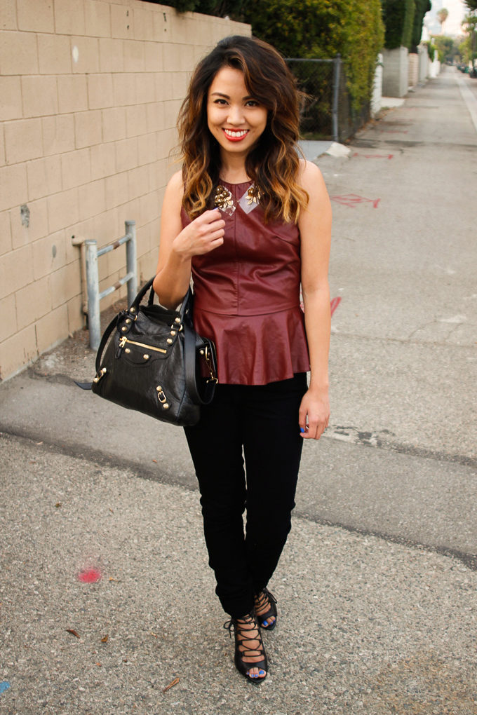 Leather blouses with basky are popular with young women. Glossy surface, solid smooth surface is perfect for bold bright silhouette.