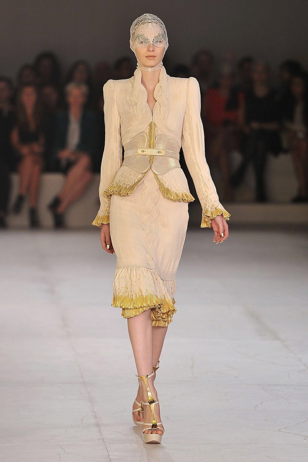Unusual option - sleeves, wings. Due to the flowing form, a wavy basque is visually repeated.