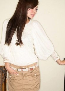 With a long-sleeved blouse, it is quite possible to wear a mini-skirt, since closed hands make it possible to expose the lower part of the body without appearing vulgar