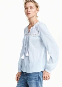 Blouses with long sleeves have a wide range of, as experimenting with the style of this item of clothing, it is possible to make very effective and non-standard options from a standard blouse.