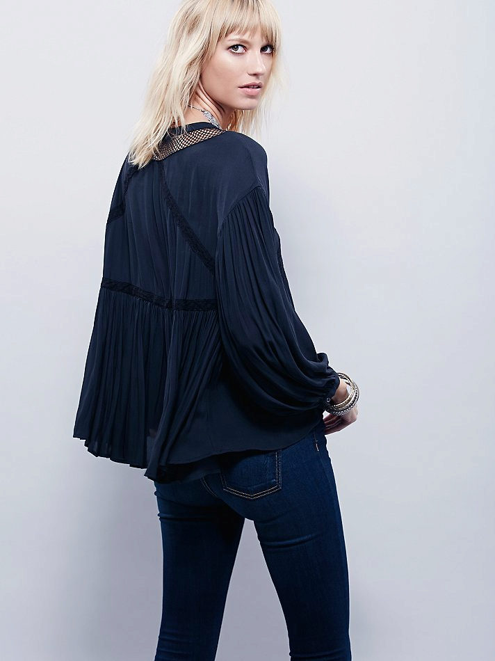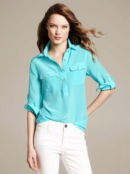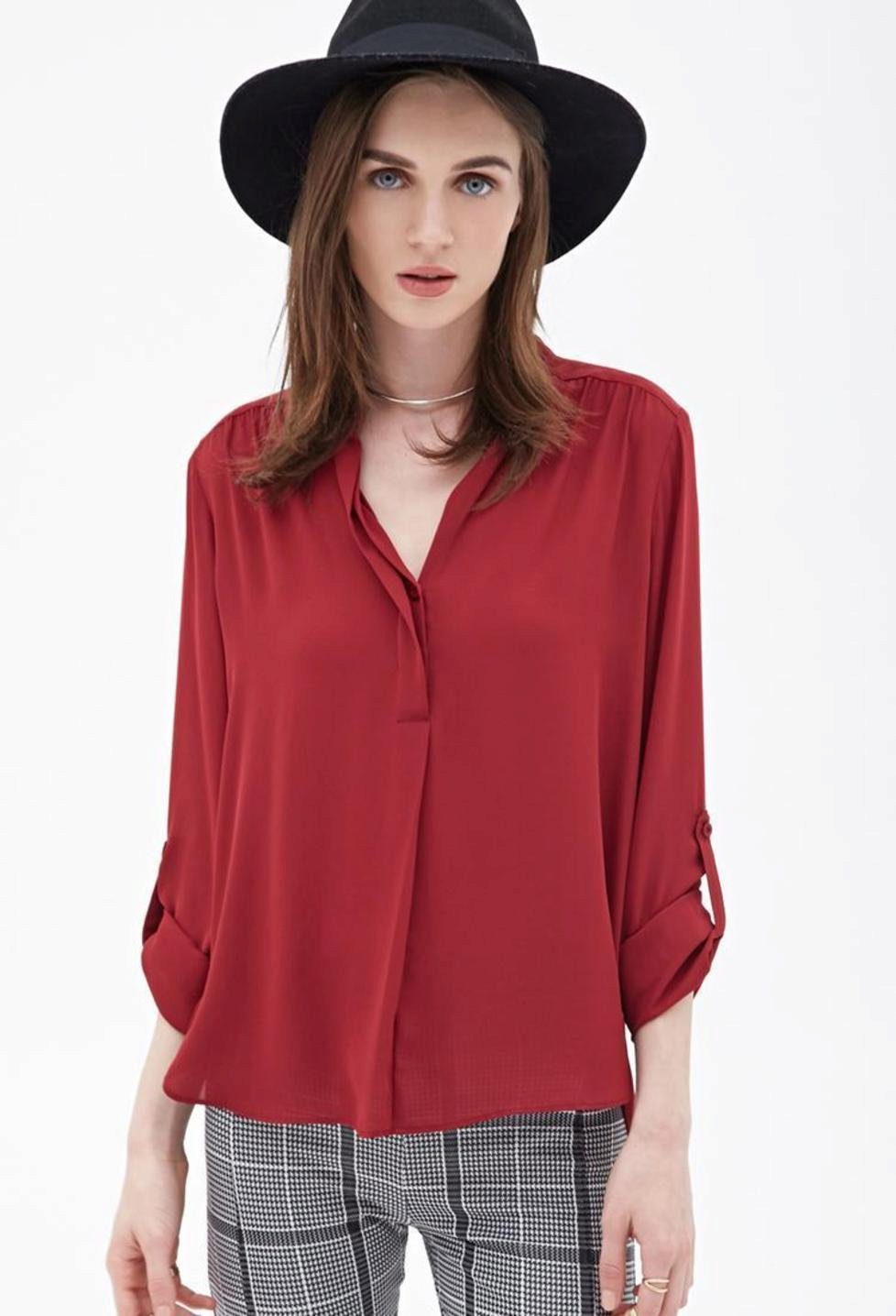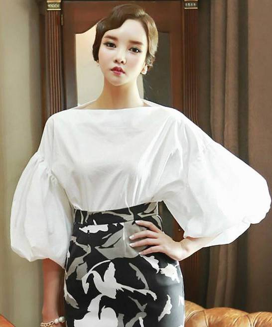 The sleeves-lanterns give the blouse a playful and unpretentious look. Since they are rather voluminous, they are not recommended to be worn by full girls, because some additional volume will visually be added to the extra pounds.
