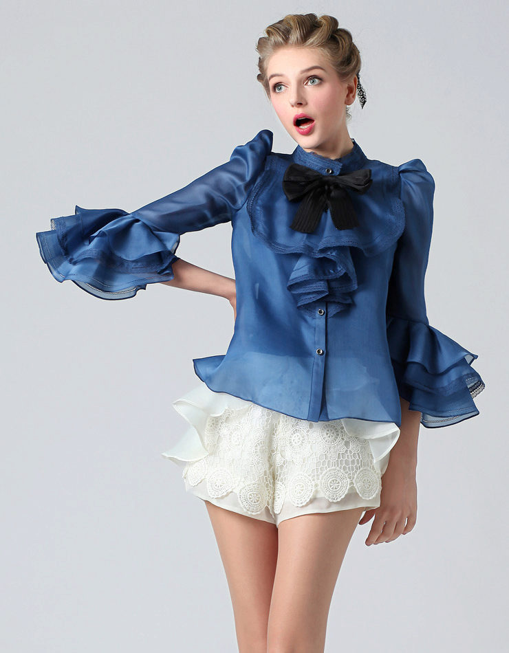 Sleeves-shuttlecocks look very interesting and intriguing. Despite the fact that they most often act as an element of retro-style, in combination with trend models of blouses, they create very fashionable and modern images. Sleeves-shuttlecocks look most impressive when made of translucent lace or lace fabric.