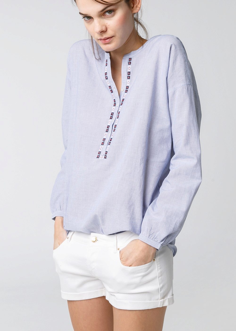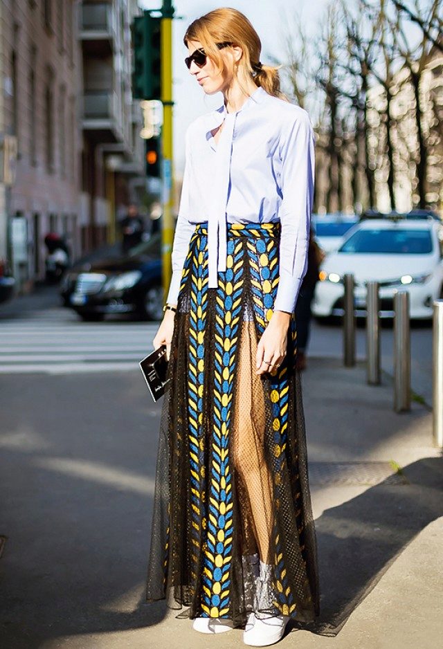 Since the blouse with long sleeves is a rather popular model, they are worn with almost any bottom.