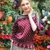 Ruffles can be a decorative element that adorns the blouse in the area of the sleeves, collar or along a line of buttons. Ruffles are small flounces that look very stylish and cute, but do not overdo it with such elements.