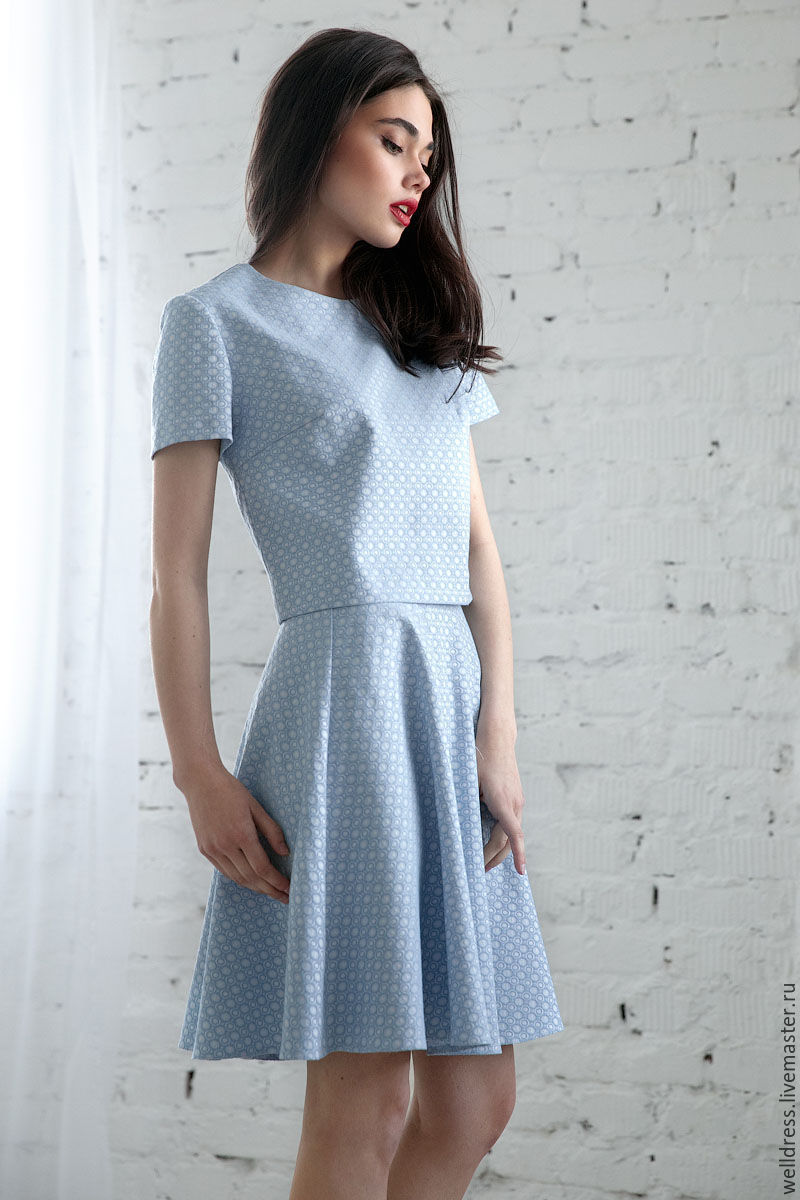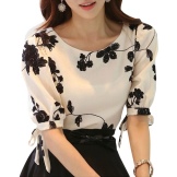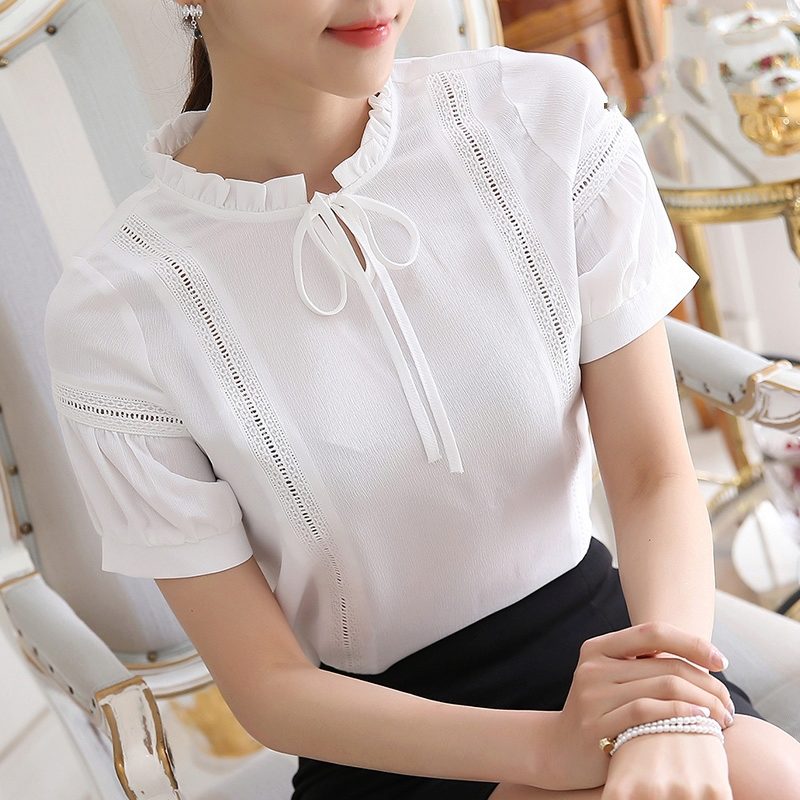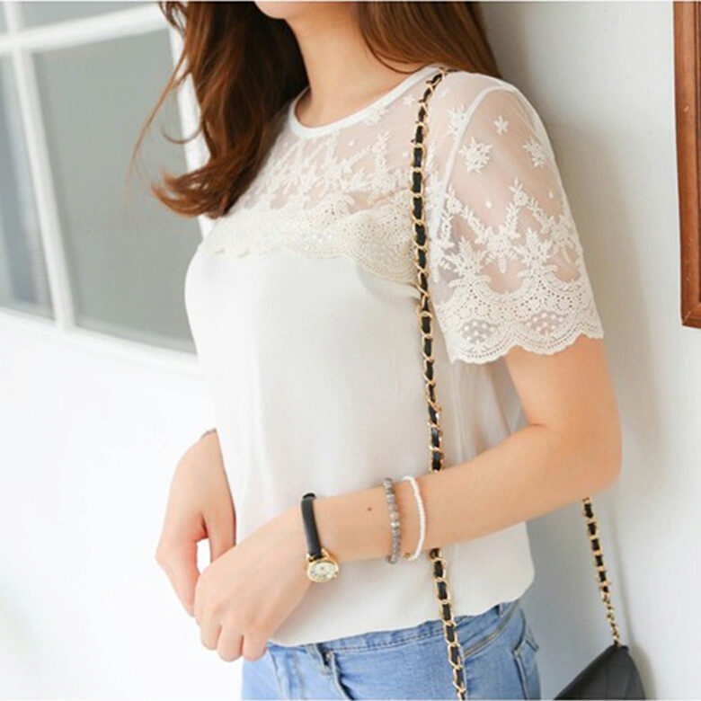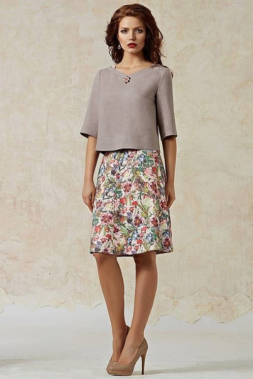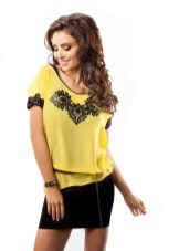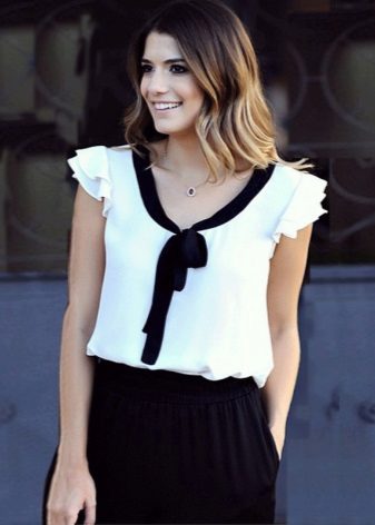 The combination of this model blouse with a black skirt straight cut, knee-length or slightly higher, will attract admiring glances, and give the image elements of freshness and lightness.