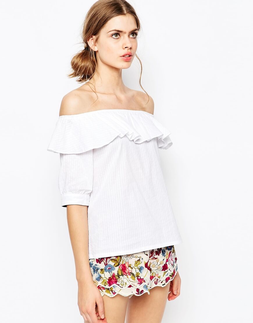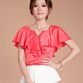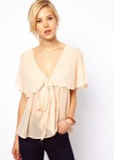 Model with frills are very popular with bright, extraordinary personalities who like to make an indelible impression. Very popular models that hold on the shoulders, and the shuttlecock is the beginning of a blouse and, in a sense, a collar. In addition, the shuttlecock looks great as a decor, along the line of buttons.