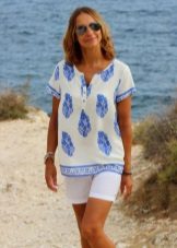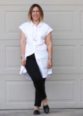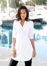 The elongated models of free-cut blouses are best combined with wide belts with elastic bands or thin leather straps, as well as leggings or tight-fitting models of trousers.