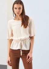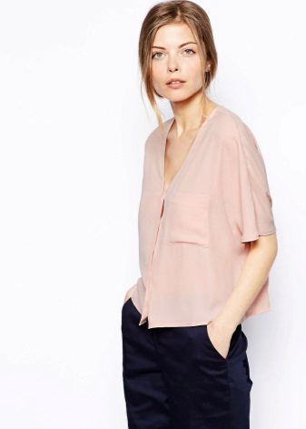 Shorter models of blouses are more suitable for slender girls who do not have flaws in their figure. The ideal combination of a shortened blouse with other things will be models of trousers and skirts with a high waistline.