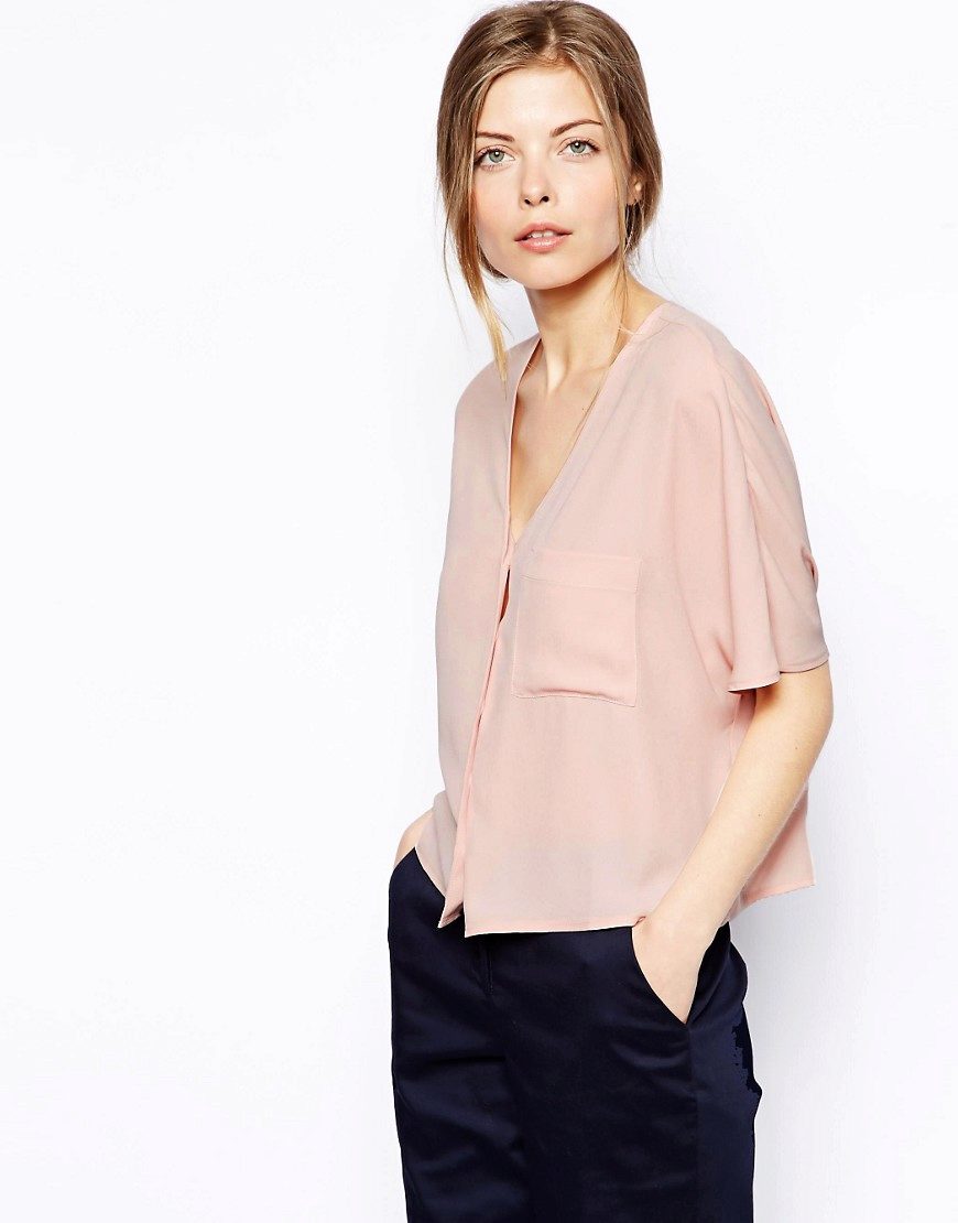 This cutout model is most often used on blouses with button closure. It looks best on cotton models and fits perfectly within the framework of business style.