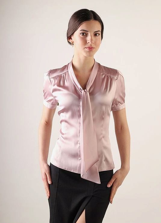 Satin fabric is fairly light, but still somewhat denser than silk or chiffon. Be careful with satin blouses. Due to the shiny front of the fabric, some products from it may look a bit vulgar and pretentious, which will adversely affect the image as a whole.
