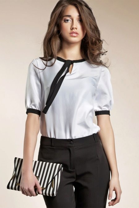 Office style requires compliance with a specific dress code, but this does not mean that the dress should be boring and bland. A light white silk blouse with a sleeve to the elbow will be the perfect option for a business look.