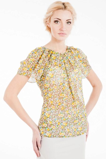 Chiffon blouses, due to the lightness and airiness of the fabric itself, look very gentle and are well suited for hot weather. The peculiarity of chiffon fabric is that it combines well with other, more coarse fabrics, such as denim or tweed fabrics.