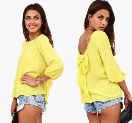 Particular care should be taken when choosing the strict blouses, which are purchased for visiting the office. Open back is a real taboo for such places, but, skillfully picking up the rest of the image and style of the blouse, you can safely put it on to work.