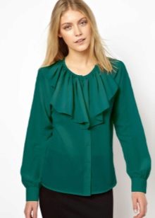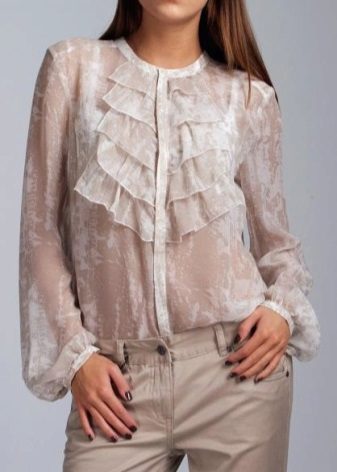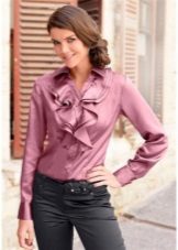 And do not forget that a blouse, in the decoration of which flounces are used, looks bright on its own and is a spectacular thing. For this reason, no accessories are worn with it, since any jewelry will look unnecessarily with such a blouse.