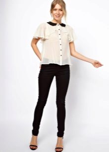 The most successful "companion" to the blouse with frill considered classic and narrow pants. However, with such blouses skirts also look good, especially the pencil model. If you want to create a romantic image, a blouse with a shuttlecock on the sleeves or shoulders can be supplemented with a flared maxi skirt.