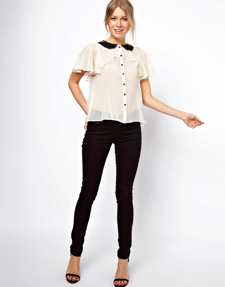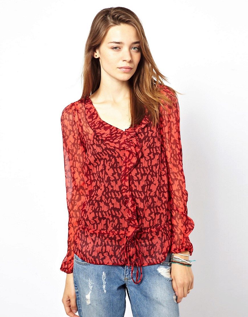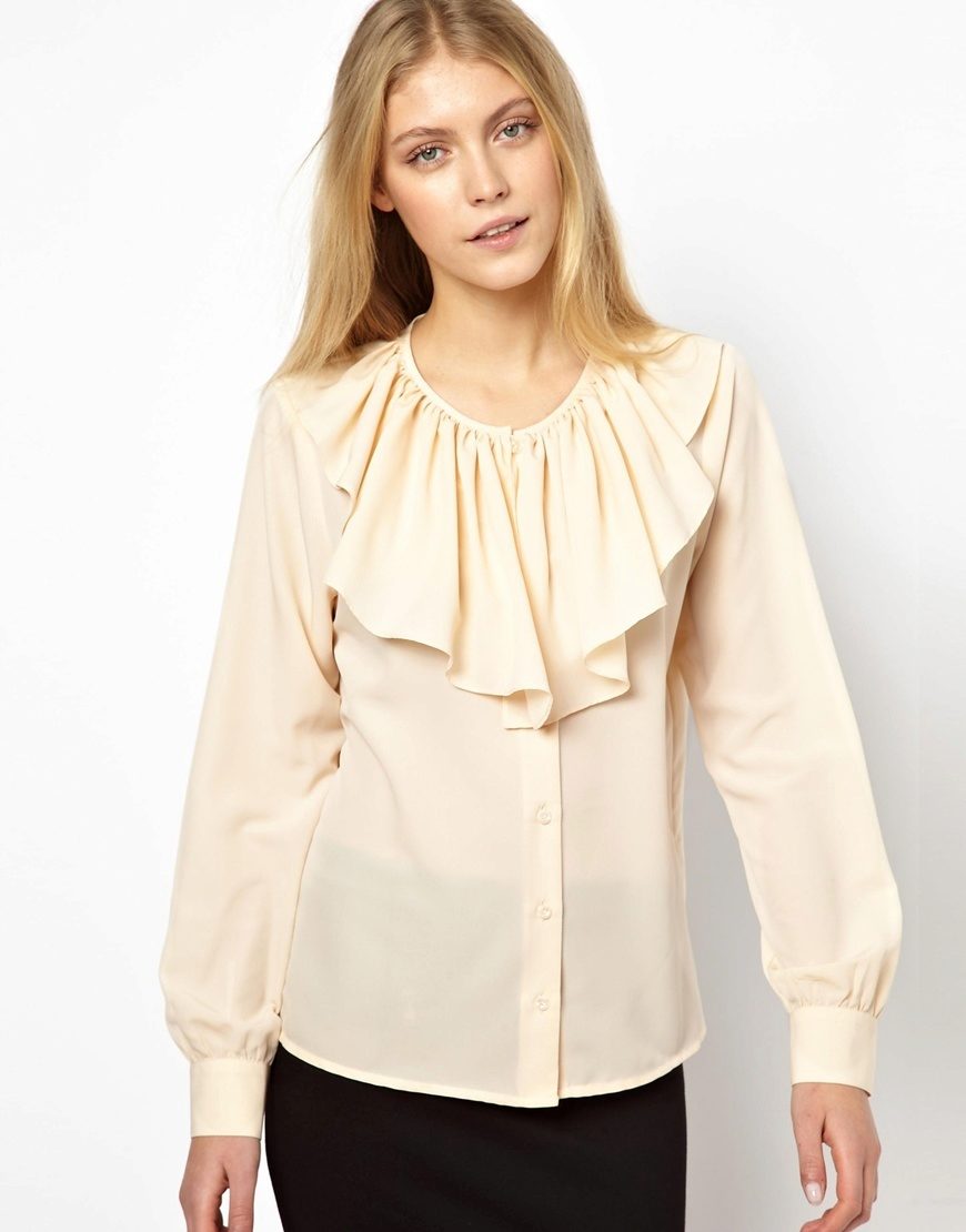 When choosing a blouse with frill that fits your figure, keep in mind these details: