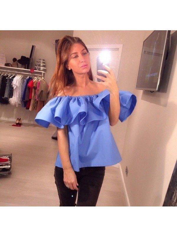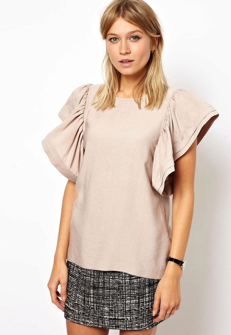 A large shuttlecock on the shoulders is presented in models of Carmen blouses, which they love in hot countries. They go both to slender beauties, and girls with magnificent forms. Shuttlecocks on the sleeves look original, especially if the shuttle replaces short sleeves. Such summer blouses are suitable for women of any stature and age. Also there are models in which shuttlecocks are located on the cuffs.