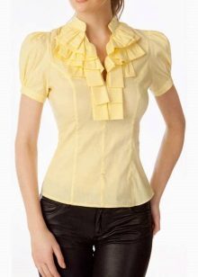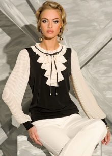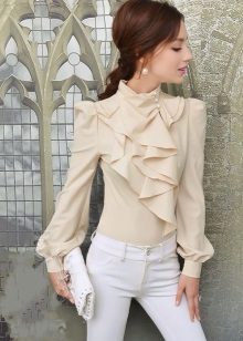 A stylish blouse is always indispensable in the wardrobe of fashionistas. A blouse with a frill becomes the real treno of this season. Increasingly, they can be seen in the collections of famous fashion designers.