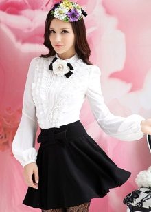 - For secular parties will be a good choice of lace skirt. A white and black blouse with a black lace jabot with a brooch will help to create a black and white gamut.