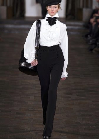 - Classic or cropped trousers and a blouse with a jabot will be a good set for the working day. Supplement this kit can be a jacket.
