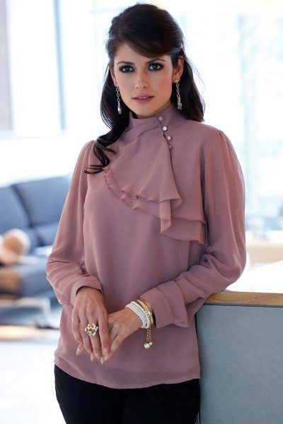 The practicality and elegance of blouses with jabot are indisputable. They will be a great duet for skirts, trousers, jackets, and vests.
