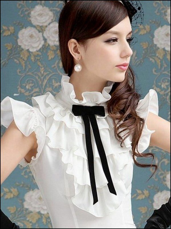 The first appearance of this type of collar was at the beginning of the 18th century in men's suits. Later, after about a hundred years, the jabot became part of the female dress. And now blouses with a collar of jabot are part of the collections of fashion houses. All thanks to Karl Lagerfeld, the German fashion designer and photographer. It was he who first used the surround decoration in their collections.