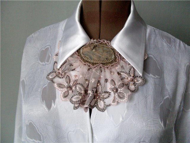 - If you want to wear an accessory to a blouse with a jabot, defer your choice in favor of expensive jewelry, for example, earrings with large stones in the style of "vintage".