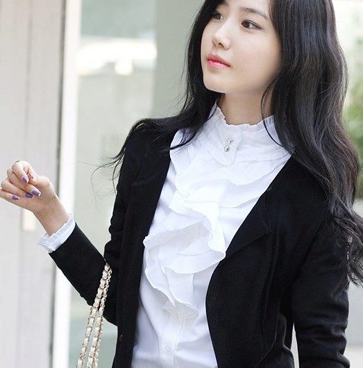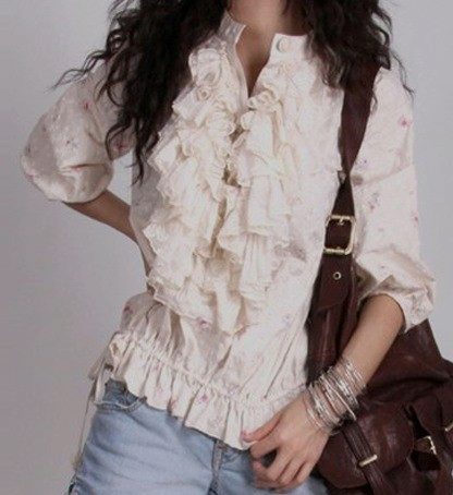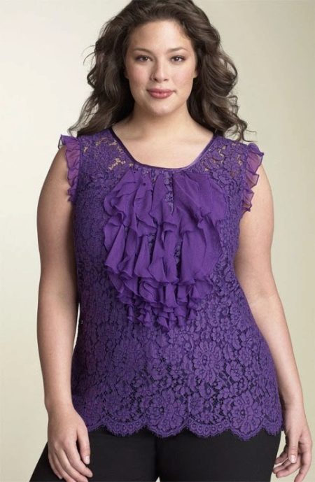 For example, a blouse with small flounces (frill) is better suited for girls with curvaceous shapes. Due to the small ruches-flounces that go down almost to the edge of the blouse, your figure will visually appear thinner.