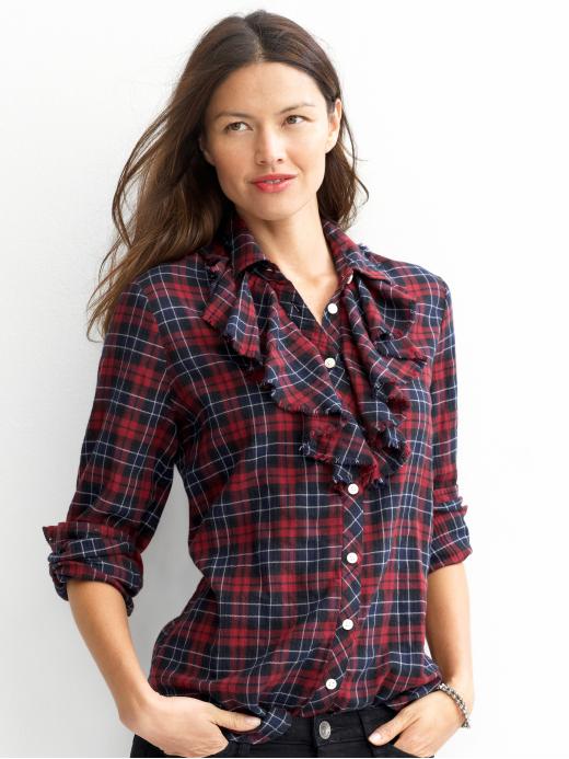 Cowboy style will help to create a blouse in a cage with buttons. Jeans here - an indispensable element.