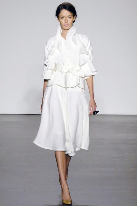 - Total white look for summer will help create blouses with long and large frill in combination with a skirt-sun.