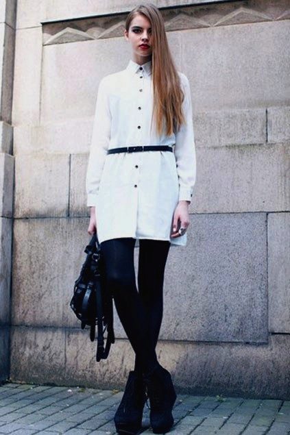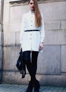 Choosing an elongated blouse, emphasize the waist with a belt. Young girls can wear a long satin blouse as a dress, it is enough to wear bright tights, shoes and accessories.