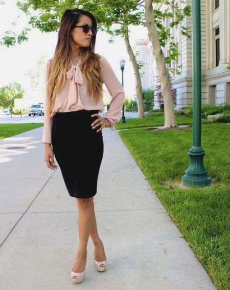 If you choose a dress in a classic style - stick to simplicity: a minimum of jewelry and an emphasis on silhouette. The classic light blouse will perfectly fit into a business style. Looks good with a monophonic suit. It is better to choose a skirt strict, direct and not above a knee.